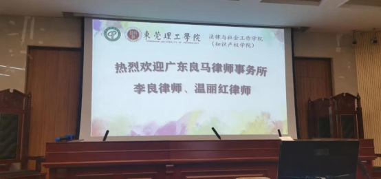 2020年11月25号上午,广东良马律师事务所的李良主任律师以及温丽红律师,以中美企业竞争中的知识产权保护为题,在莞城校区的模拟法庭为英国365集团官网法学专业大三的员工做了专题讲座。