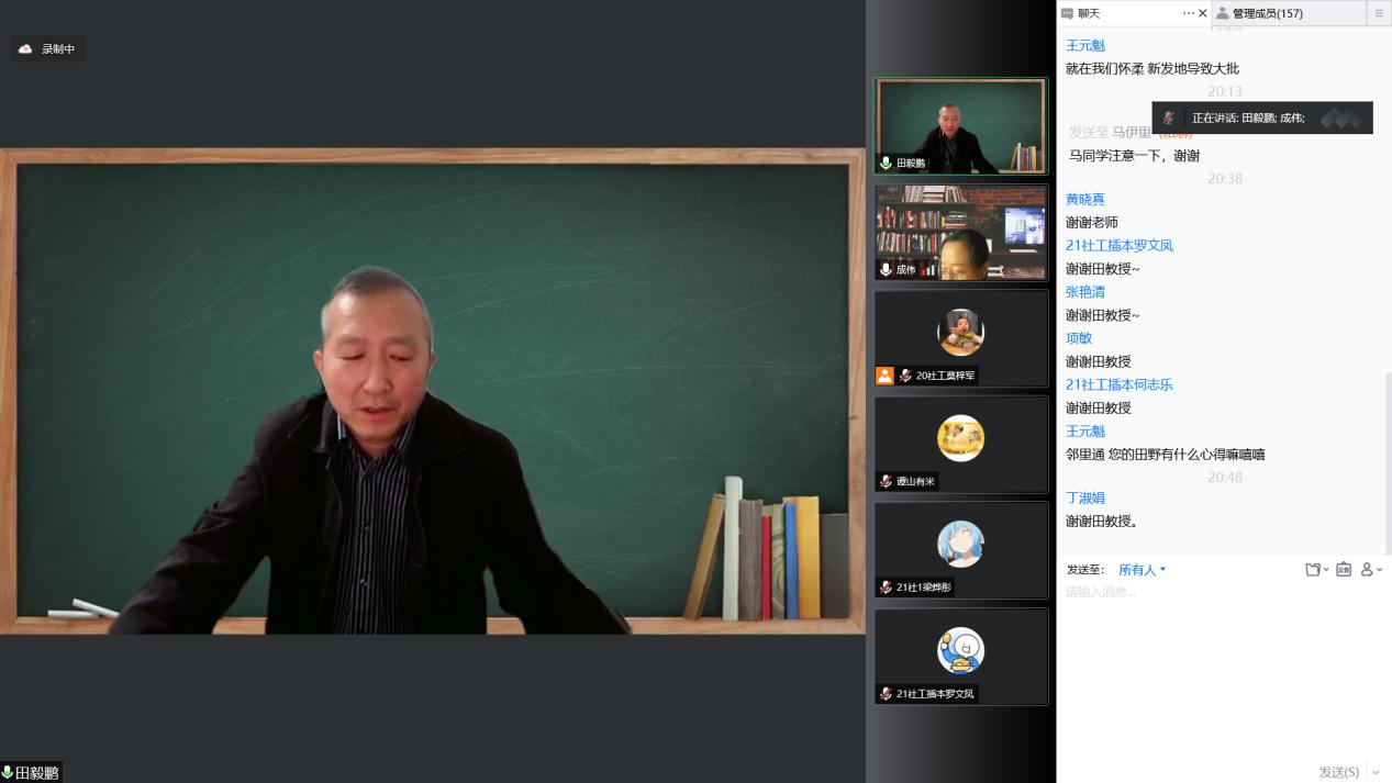 在最后,成伟教授再次感谢田毅鹏教授为英国365集团官网社会工作系广大师生带来的精彩报告,田毅鹏教授的讲座启发了教师对于基层治理的研究方向、激发了广老员工的学习的内在动机、指明了一线社会工作服务和评估的道路,使各方都受益匪浅,期待疫情过后田毅鹏教授能亲自莅临英国365集团官网指导公司社会工作国家一流专业建设。