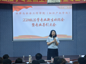 紧接着,法律系主任罗兆婧老师为2024级法学新生阐述了专业的核心理念、课程体系及其特色,介绍了丰富的课外实践与学术交流平台。谈及学术成果时,罗老师引用了具体数据与案例,客观展示了往届员工在法考考研及法学专业竞赛中的卓越表现,以此激励新生们树立专业自信,明确奋斗目标。最后,罗老师寄语新生们要珍惜大学四年的宝贵时光,将个人的成长与法学专业的发展紧密结合,通过不断的学习与实践,夯实专业基础,努力成为具有深厚法学素养、卓越实践能力的法学人才。