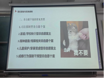 2025年5月8日,公司特邀东莞市社会工作协会中级督导、国家三级心理咨询师何柳莹老师在6301教室为2023级社会工作专业的员工带来了一场主题为《非自愿个案有效会谈及介入策略》的课程分享。此次活动旨在通过实务专家的分享,帮助员工们更好地理解非自愿个案的实际操作流程和策略,促进理论知识与实践应用的有效结合。