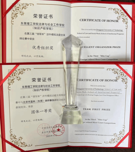 公司学子与北京市盈科(东莞)律师事务所盈德团队合作组队,第一次参加由中国法学交流基金会和重庆市高等教育学会主办、西南政法大学国际法公司承办第三届“领军杯”涉外模拟法庭全英辩论赛,荣获“领军杯”涉外模拟法庭全英辩论赛团体一等奖。公司也荣获优秀组织奖。