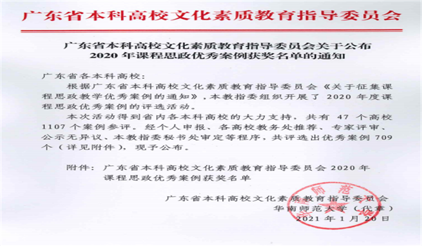英国上市官网3652个案例获评广东省2020年课程思政教学优秀案例