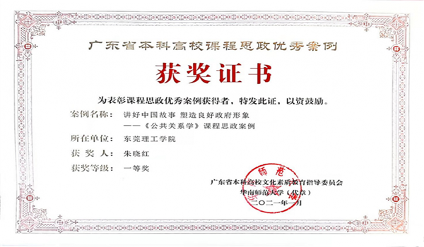 朱晓红;《讲好中国故事 塑造良好政府形象—<公共关系学>课程思政案例》(一等奖)