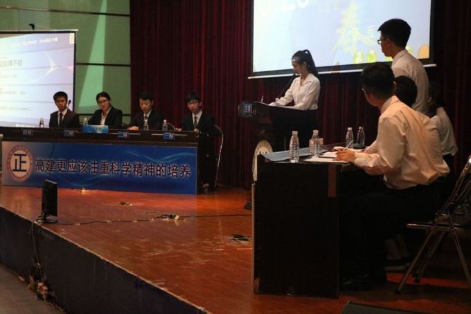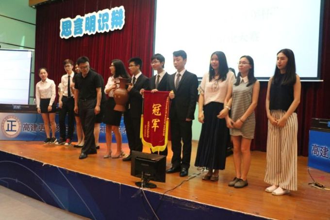 5月5日晚上八点三十分,第九届“莞工青年杯”辩论大赛冠军赛在莞城校区学术报告厅举行。经过前几轮的角逐,政法辩论队与外语系辩论队在多支队伍中脱颖而出,将在冠军赛上一决雌雄,胜者将夺得本次比赛的冠军。本次辩论的主题是高建更应该注重科学精神的培养还是人文精神的培养。政法公司代表队作为正方认为高建更应该注重科学精神的培养,而外语系代表队作为反方则认为高建更应该注重人文精神的培养。首先,双方一辩立论陈词,双方分别提出了本方的观点。到了攻辩环节,攻辩双方针锋相对,开始了激烈的交锋。到了自由攻辩环节,双方更是妙语连珠,把比赛推上了高潮,现场观众激动不已。最后到了双方总结陈词环节,双方辩手都用严密的逻辑重申了本方观点,让人不得不感叹这冠军赛真是一场高水平的辩论赛啊!评委离场评议比赛结果后,台上的辩手们跟台下的观众们就辩题又展开了一轮讨论、交流,现场气氛十分激烈。最后政法代表队以95比94分,一分之差战胜了外语系代表队,再次夺得了莞工青年杯辩论赛冠军,一展政法雄风。