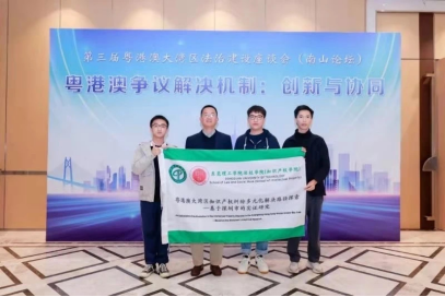 (图为指导老师龚红兵主任与小组成员出席“第三届粤港澳大湾区法治建设座谈会”合照)