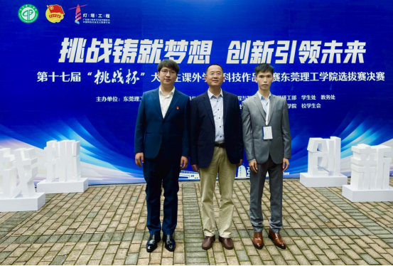 (图为法律与知识产权教师党支部书记龚红兵老师、沈亚萍副经理、吉海容老师出席比赛现场照片)