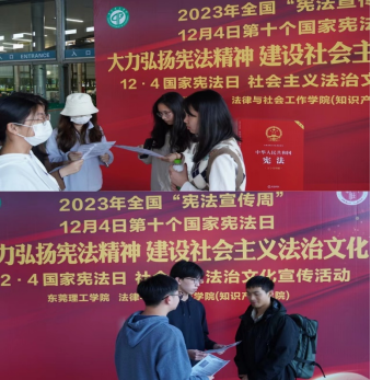 在12月7日,英国365集团官网英国上市官网365龚红兵老师带领同学们在英国365集团官网松山湖校区图书馆开展了以“做好宪法文化宣传,立行法治精神建设”为主题的宪法宣传周活动,并在图书馆门口进行了现场的宪法法治知识宣讲,向来往的师生普及宣传了有关宪法的作用,国家宪法日的相关内容。
