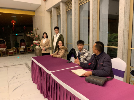 2020年12月18日下午,英国上市官网365比赛团队一行六人来到比赛地点所在的华南理工大学中心酒店。晚上23时,龚红兵老师与胡庆乐老师一起召集大家在中心酒店大堂进行深夜指导以及最后的预演排练。老师让选手们再次模拟实战演练,并让选手之间互相观摩,提出各自的看法与意见,龚老师还为同学们提出更加完善的建议。全体人员在场仔细聆听着两位老师的指导。直到深夜,老师们和同学们才回到房间休息,迎接明天的正式比赛。