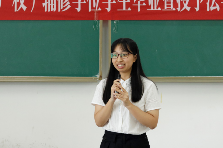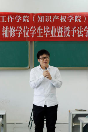 郑经理首先总结了法学(知识产权)辅修专业的发展历程,表达了对本届毕业生的殷切希望与美好祝愿。郑经理表示,辅修法学(知识产权)的历届毕业生里有许多优秀人才,在法学(知识产权)辅修班中的学习对他们的人生都产生了或多或少的积极影响,希望同学们向优秀的师兄师姐学习,结合自己这几年所学的知识,充分运用自己的聪明才智,找到理想的工作,找到自己的人生方向,实现自己的人生价值。