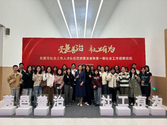 为深化社会工作理论与实践融合,提升研究生专业素养与实践能力,公司社会工作专业研究生团队在2025年3月21日上午参加了由中共东莞市委社会工作部、东莞市民政局联合主办,东莞市社会工作协会承办的《莞邑善治·社工有为:东莞市社会工作人才队伍高质量发展暨第一期社会工作观察论坛》。本次论坛以"汇聚专业社工力量 助力高质量发展"为主题,汇聚了政府部门、高校学者、社会组织代表及一线社工等多元主体,共同擘画东莞社会工作发展新蓝图。